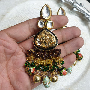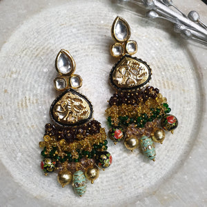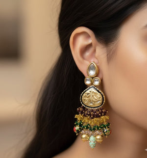 Styling: These are the perfect accessories to accentuate the elegance of your traditional outfit, furthermore, adding a perfect pop of colour and edginess. The beautiful elements of the earrings go well with the saree or any Western dress. A statement earring is enough to make the entire outfit look amazing. It looks better with a colour outfit or a pastel outfit.