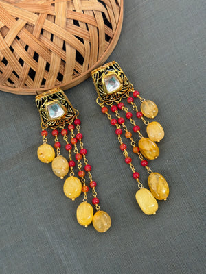 Styling: These are the perfect accessories to accentuate the elegance of your traditional outfit, furthermore, adding a perfect pop of color and edginess. The beautiful elements of the earrings go well with the saree or any Western dress. A statement earring is enough to make the entire outfit look amazing. It looks better with a solid color outfit or pastel outfit.