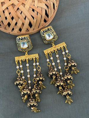 An elegant meenakari earring with the most stunning festoon. The perfect accessory for your occasion. This earrings are handcrafted with love