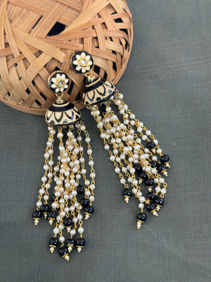 An elegant meenakari earring with the most stunning festoon. The perfect accessory for your occasion. This earrings are handcrafted with love