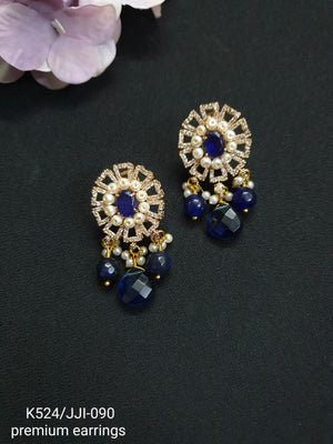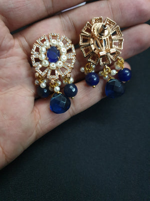 Blue American Diamond Pearl Earrings