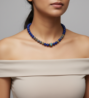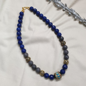 Blue and Grey Beads Stone Jadau Necklace