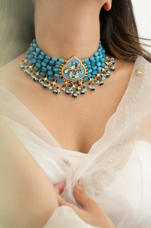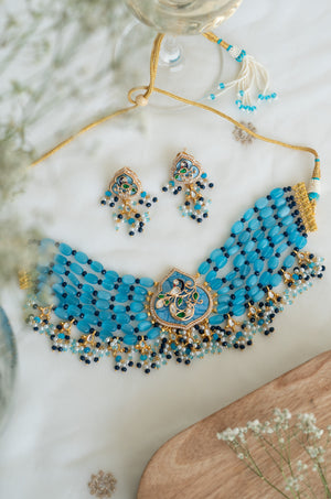 Blue Beaded Choker with Intricate Kundan Detailing