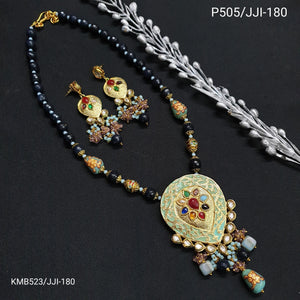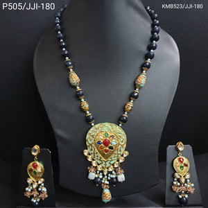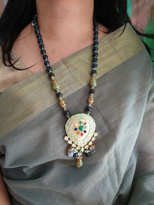 An elegant blue beads stone meenakari pendant with the most stunning festoon. The perfect accessory for your occasion. This necklace is handcrafted with love