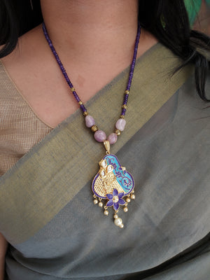 An elegant purple beads stone meenakari pendant with the most stunning festoon. The perfect accessory for your occasion. This necklace is handcrafted with love