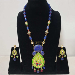 Blue Beads Stone & Meenakari Fusion Pendant With Earrings