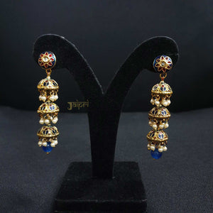 Blue Floral Jhumki Meenakari Earrings