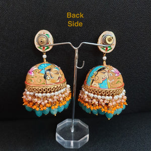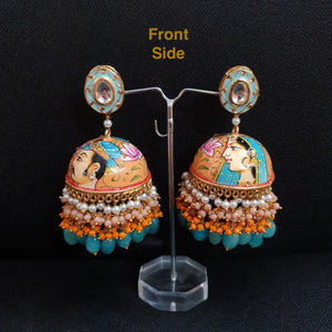 Blue Hand Painted Kundan Jhumka Earrings