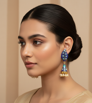 Blue Handpainted Jhumki Earrings