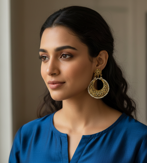 Styling: These are the perfect accessories to accentuate the elegance of your traditional outfit, furthermore, adding a perfect pop of color and edginess. The beautiful elements of the earrings go well with the saree or any Western dress. A statement earring is enough to make the entire outfit look amazing. It looks better with a solid color outfit or pastel outfit.