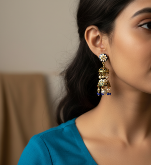 Blue Meenakari Floral Jhumki Pearl Earrings