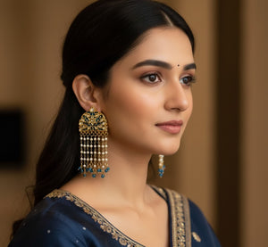 Styling: These are the perfect accessories to accentuate the elegance of your traditional outfit, furthermore, adding a perfect pop of color and edginess. The beautiful elements of the earrings go well with the saree or any Western dress. A statement earring is enough to make the entire outfit look amazing. It looks better with a solid color outfit or pastel outfit.