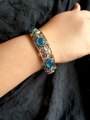 An elegant blue stone kada is the most stunning festoon. The perfect accessory for your occasion. This bangle is handcrafted with love