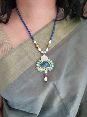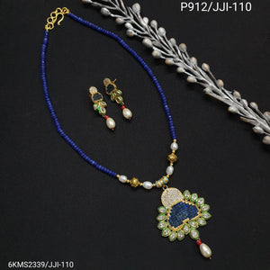 Blue Stone Designer Kundan Pendant Set With Earrings