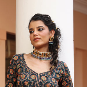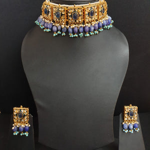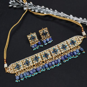 Blue Stone Kundan Meenakari Choker Necklace With Earrings