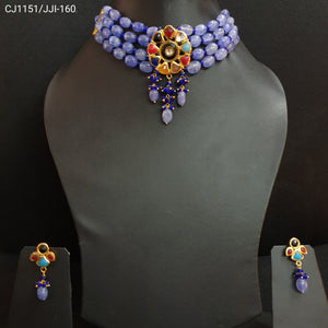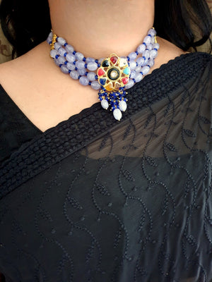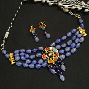Blue Stone Kundan Meenakari Choker Necklace With Earrings