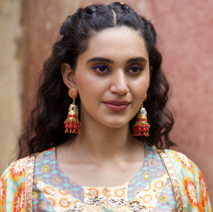Styling: These are the perfect accessories to accentuate the elegance of your traditional outfit, furthermore, adding a perfect pop of color and edginess. The beautiful elements of the earrings go well with the saree or any Western dress. A statement earring is enough to make the entire outfit look amazing. It looks better with a solid color outfit or pastel outfit.