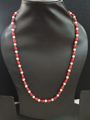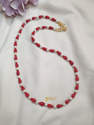 Coral Color Drop Stone Single Layered Pearl Long Mala