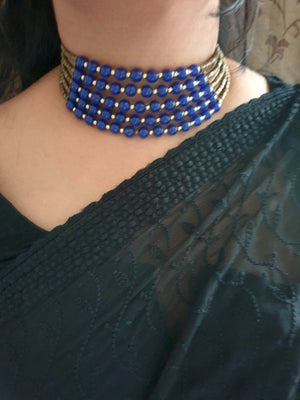 An elegant dark blue beaded adjustable choker necklace with the most stunning festoon. The perfect accessory for your occasion. This necklace is handcrafted with love