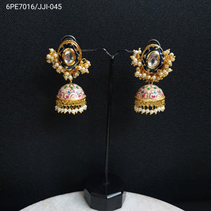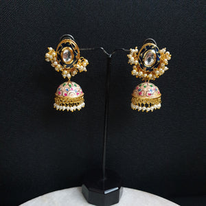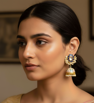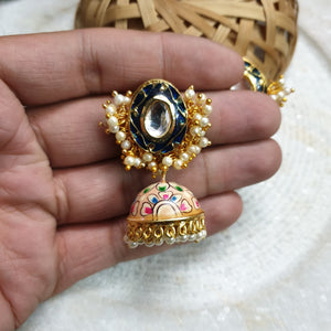 Dark Blue Handpainted Jhumki Kundan Earrings