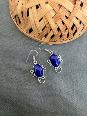 Dark Blue Stone Silver Oxidised Drop Earrings