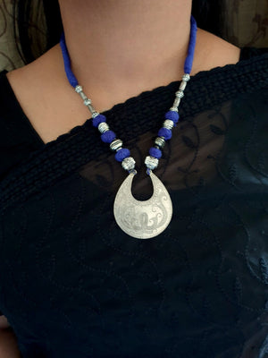 Dark Blue Thread Oxidised Necklace Set