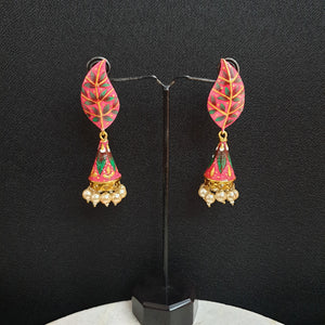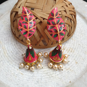 Elegant handpainted dark pink jhumki earrings with the most stunning festoon. The perfect accessory for your occasion. These earrings are handcrafted with love