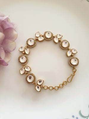 An elegant stone kundan bracelet is the most stunning festoon. The perfect accessory for your occasion. This bracelet is handcrafted with love