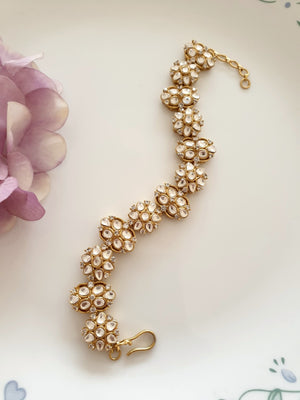 An elegant stone kundan bracelet is the most stunning festoon. The perfect accessory for your occasion. This bracelet is handcrafted with love