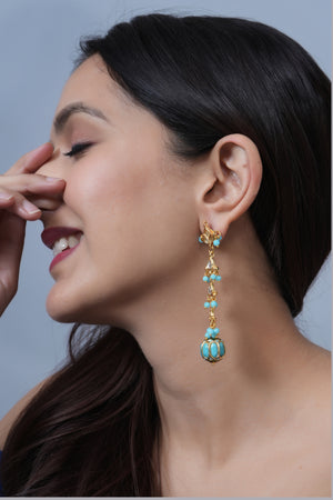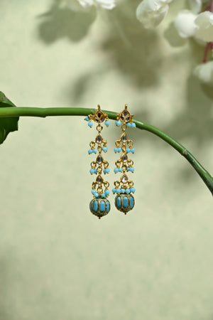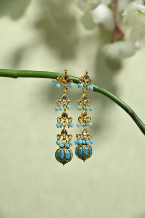 Delicate Turquoise Jadau Bead Kundan Earrings