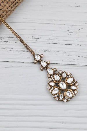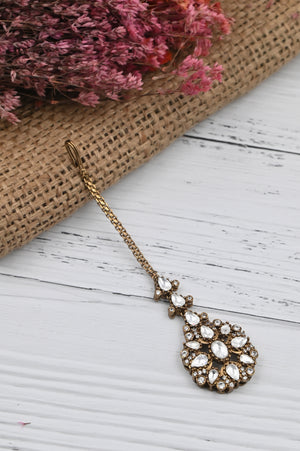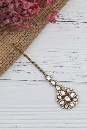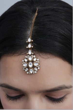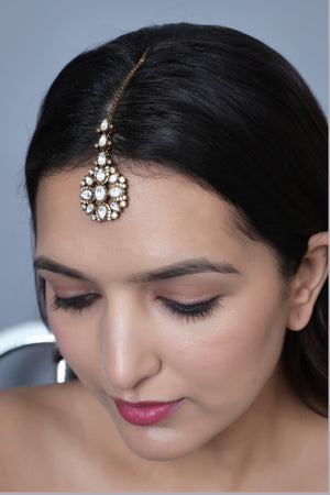 An elegant Kundan & stone maang tikka the most stunning festoon. The perfect accessory for your occasion. This maang tikka is handcrafted with love