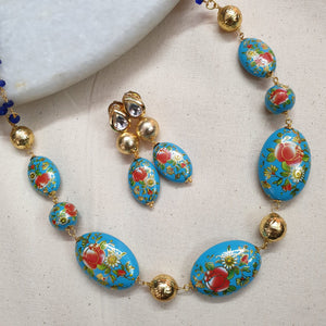 An elegant handmade floral meenakari?Stone necklace with the most stunning festoon. The perfect accessory for your occasion. This necklace is handcrafted with love