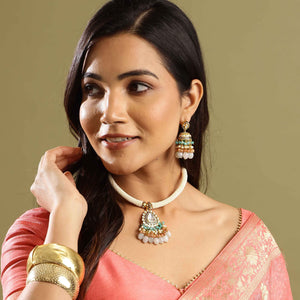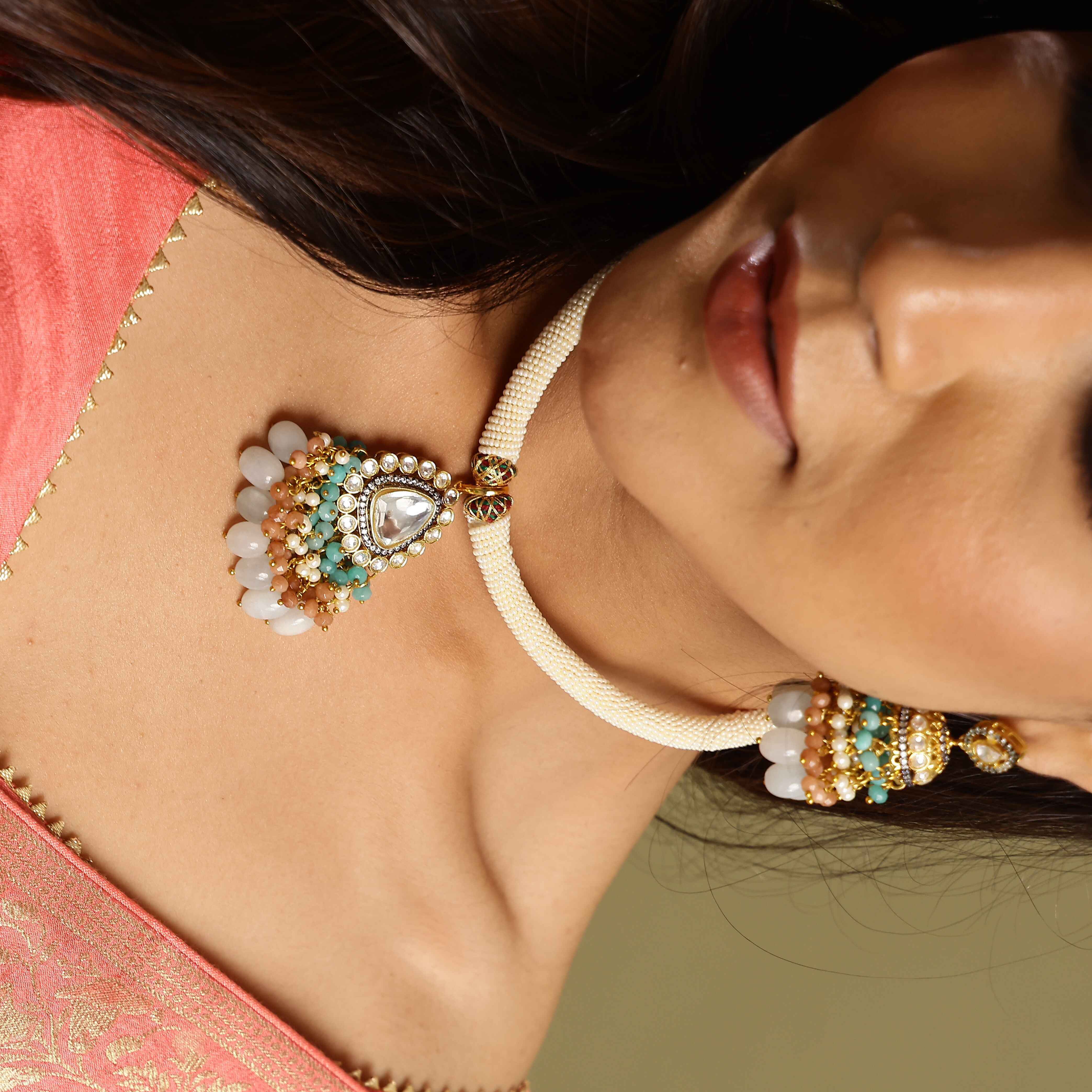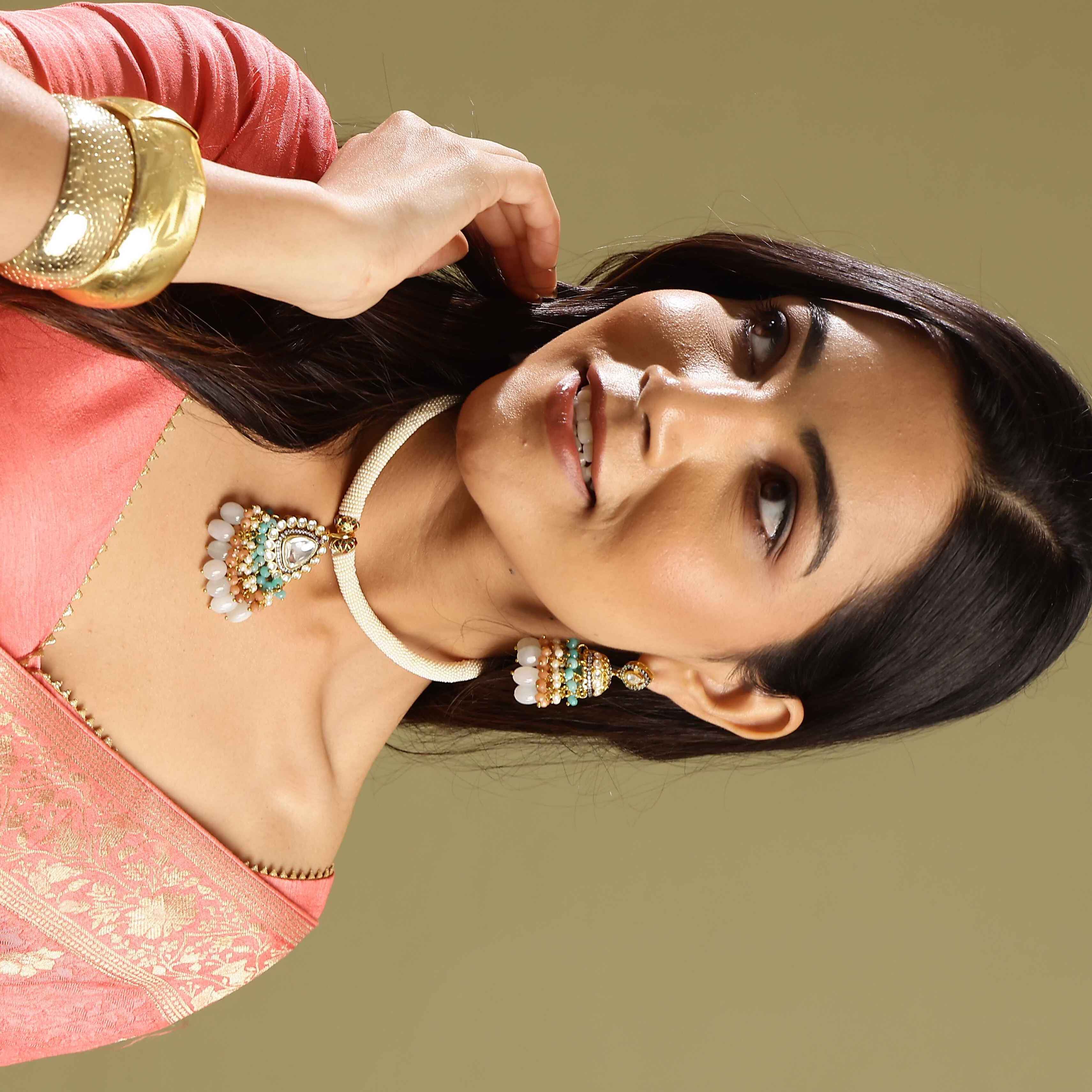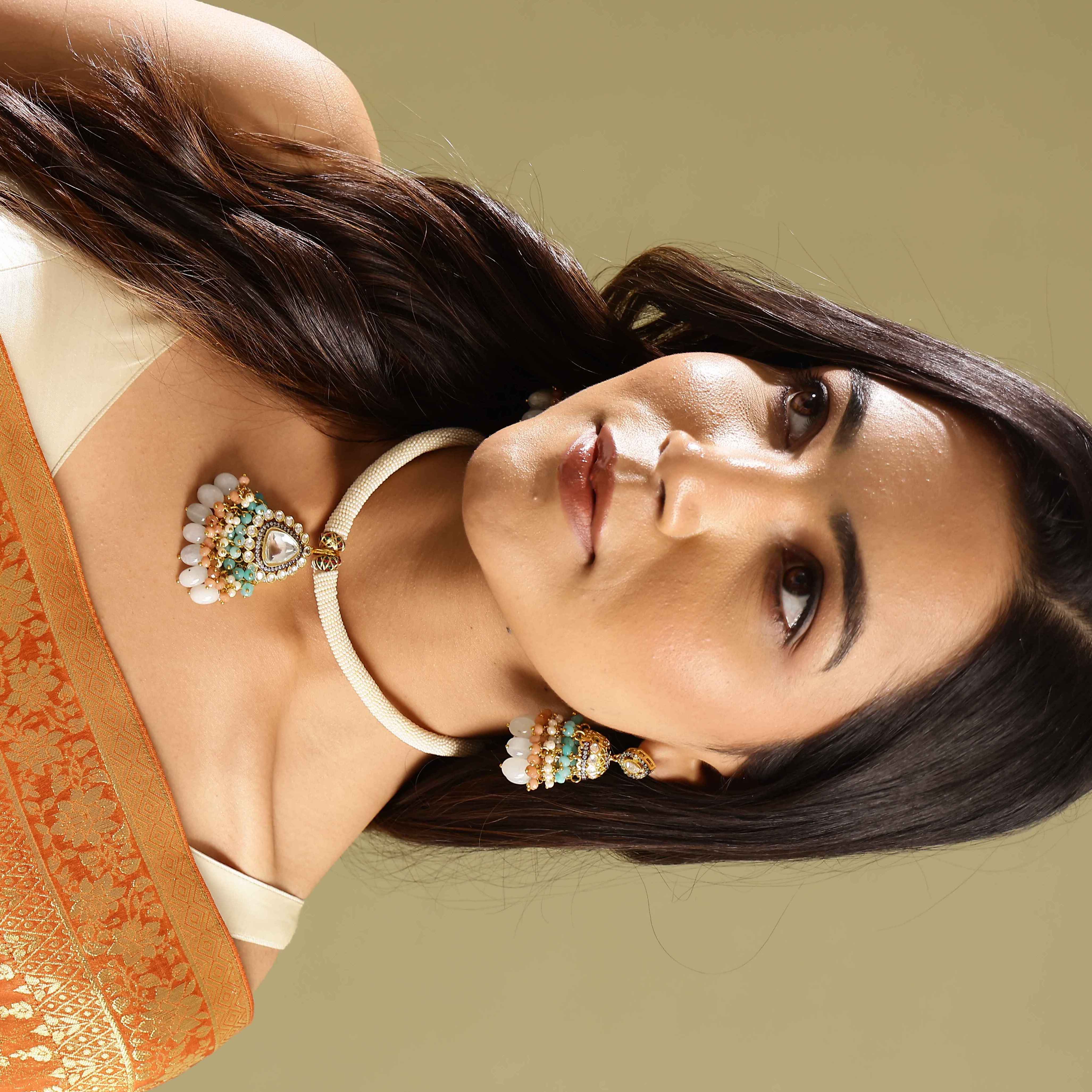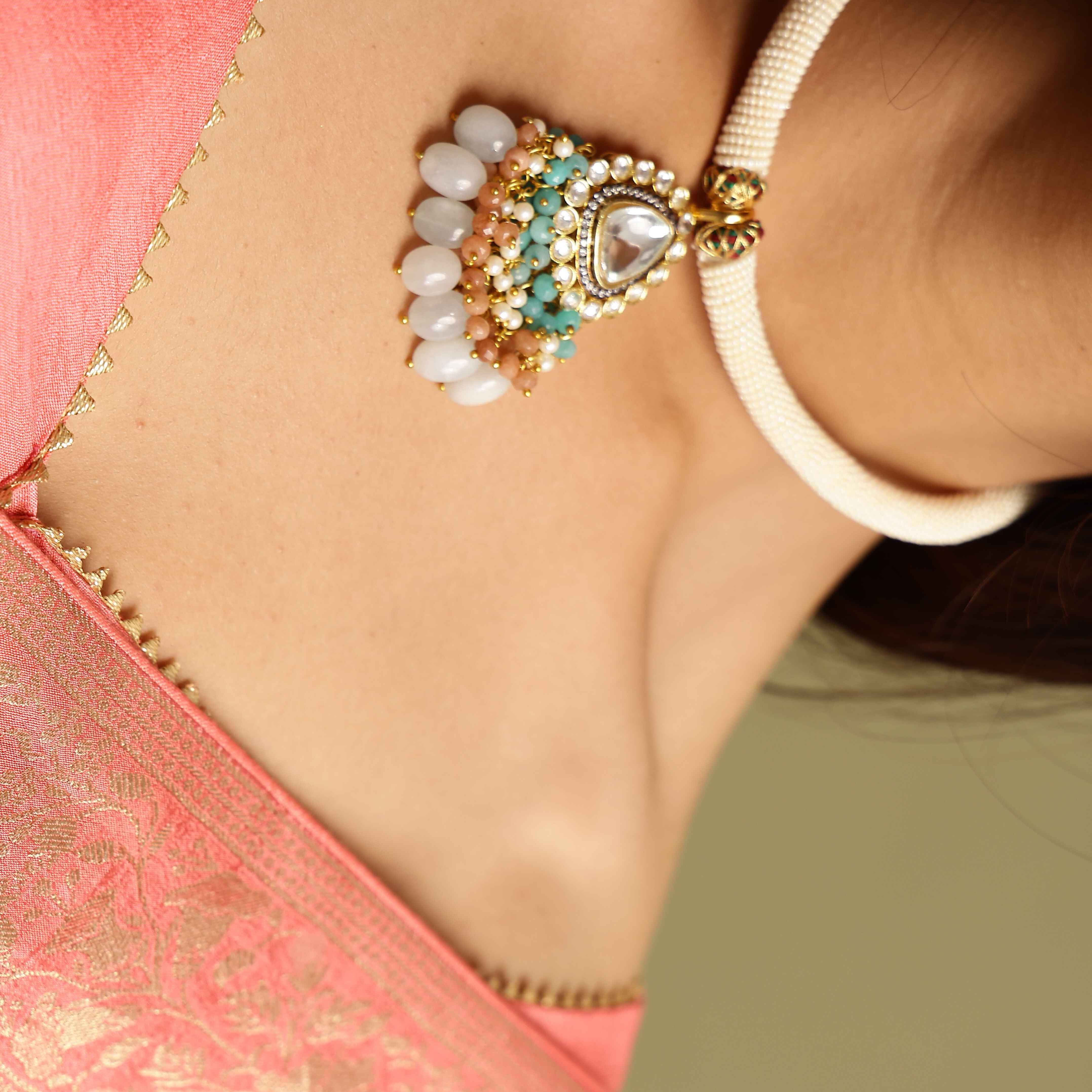 Styling: These are the perfect accessories to accentuate the elegance of your traditional outfit, furthermore, adding a perfect pop of color and edginess. The beautiful elements of the necklace go well with the saree or any western dress. A statement necklace is enough to turn the entire outfit look amazing. It looks better with a solid color outfit or pastel outfit.