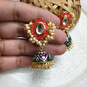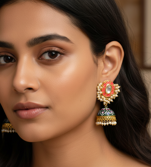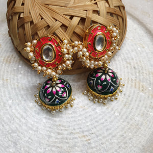 Elegant handpainted jhumki earrings with the most stunning festoon. The perfect accessory for your occasion. These earrings are handcrafted with love