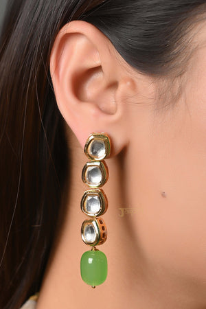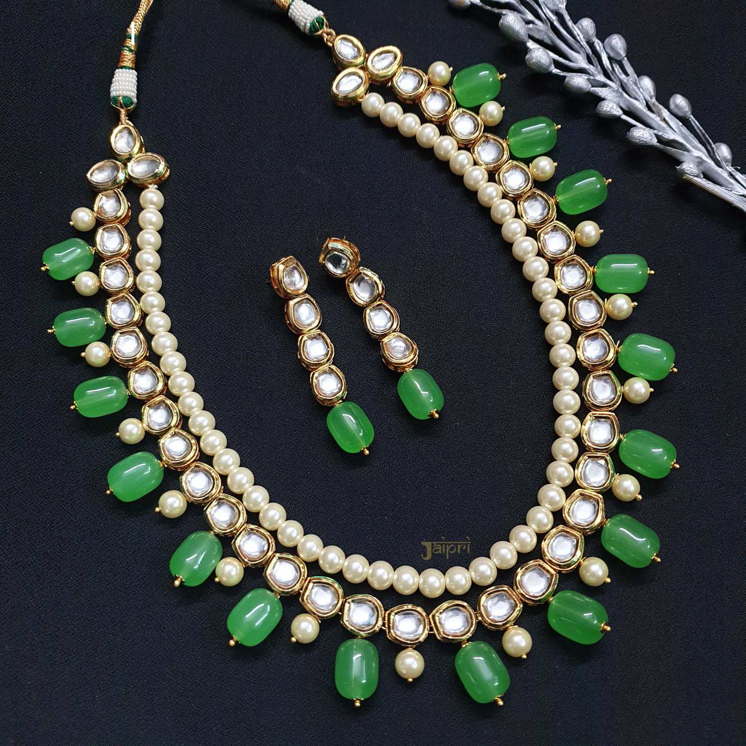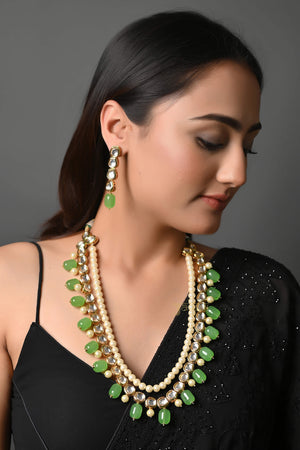 Designer Kundan & Green With Pearl Beads Stone Necklace With Earrings