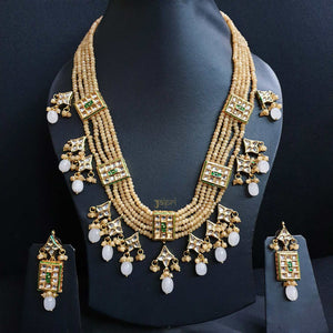 Designer Kundan & Peach Beads Stone Necklace With Earrings