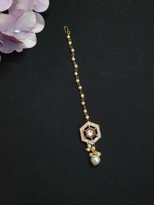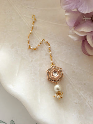 Rose Gold Designer Kundan Polki Pearl Beaded Maang Tikka