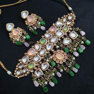 Designer Kundan Stones Bridal Necklace With Earrings