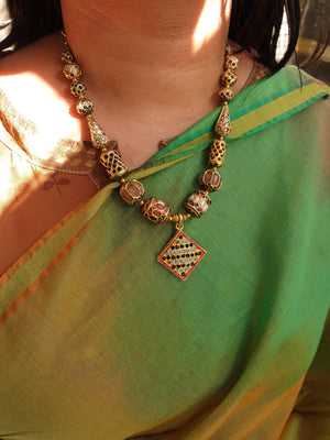 Styling: These are the perfect accessories to accentuate the elegance of your traditional outfit, furthermore, adding a perfect pop of color and edginess. The beautiful elements of the necklace go well with the saree or any western dress. A statement necklace is enough to turn the entire outfit look amazing. It looks better with a solid color outfit or pastel outfit.