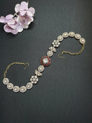 An elegant Kundan stone matha patti the most stunning festoon. The perfect accessory for your occasion. This matha patti is handcrafted with love