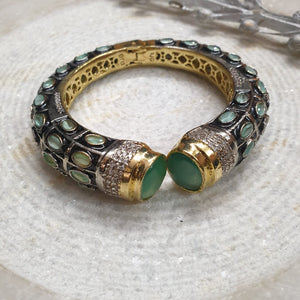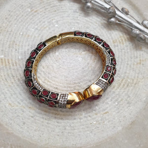 Styling: These are the perfect accessories to accentuate the elegance of your traditional outfit, furthermore, adding a perfect pop of color and edginess. The beautiful elements of the bangle go well with the saree or any Western dress. A statement bangle is enough to make the entire outfit look amazing. It looks better with a solid color outfit or pastel outfit.