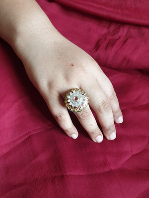 An elegant Kundan-stone ring is the most stunning festoon. The perfect accessory for your occasion. This ring is handcrafted with love