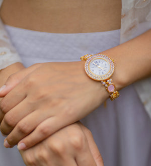 Material: 22k Gold Plated Silver Alloy, Kundan, Quartz Watch