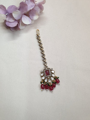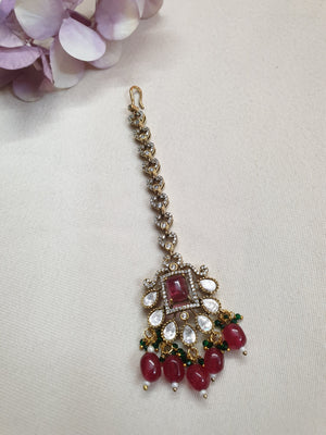 Elegant Red Stone Kundan Polki Maang Tikka