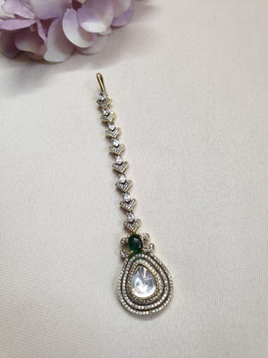 An elegant Kundan & stone maang tikka the most stunning festoon. The perfect accessory for your occasion. This maang tikka is handcrafted with love