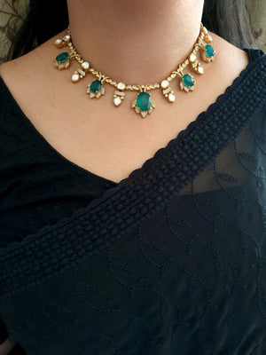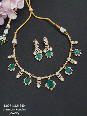 Elevate your style with this exquisite Designer Kundan polki Necklace set. Its intricate craftsmanship and regal charm make it the perfect statement piece