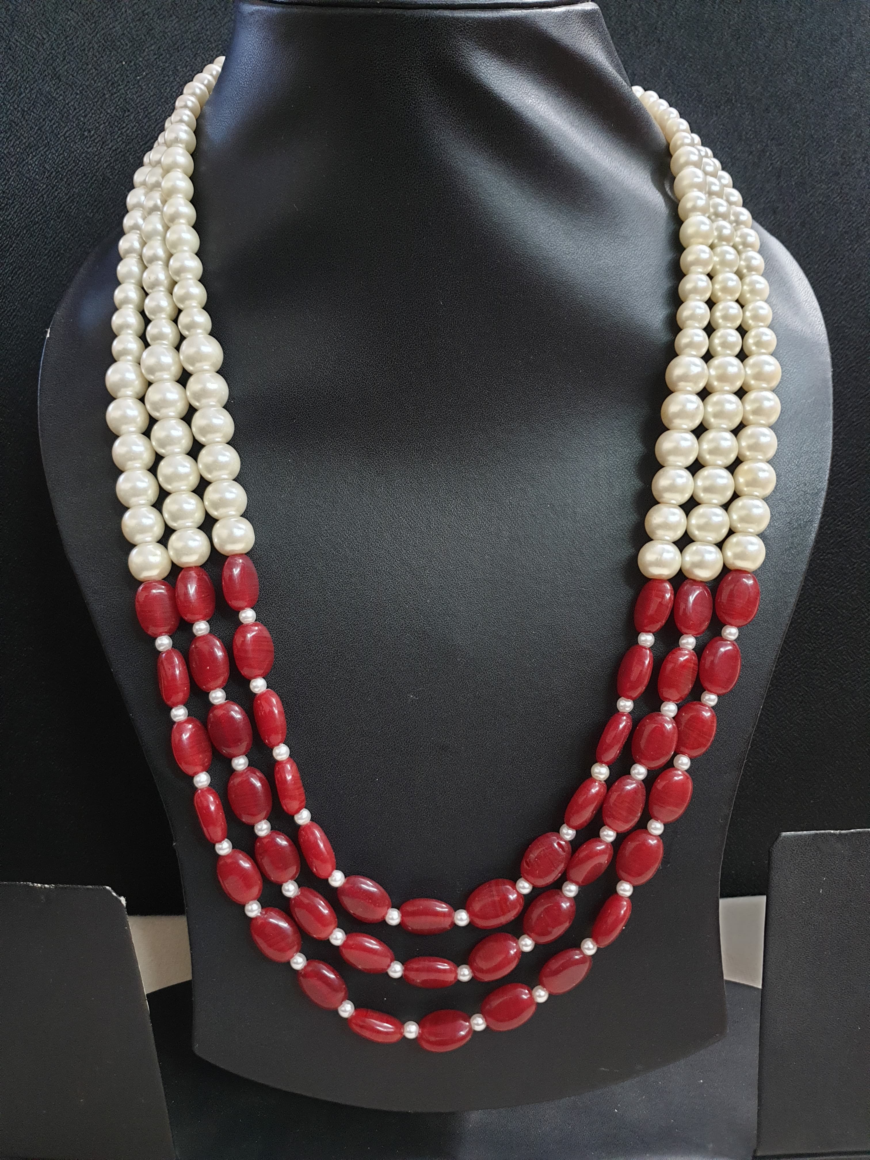 Elevate your style with this exquisite stone-beaded necklace set. Its intricate craftsmanship and regal charm make it the perfect statement piece