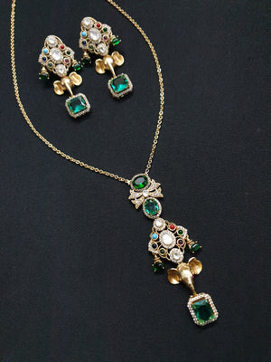 Elevate your style with this exquisite Designer bollywood-inspired necklace set. Its intricate craftsmanship and regal charm make it the perfect statement piece