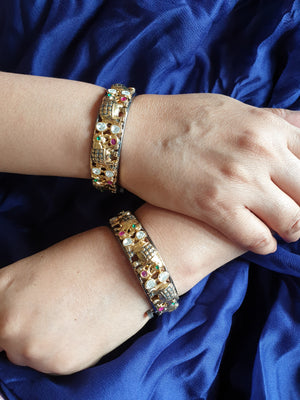 Styling: These are the perfect accessories to accentuate the elegance of your traditional outfit, furthermore, adding a perfect pop of colour and edginess. The beautiful elements of the bangle go well with the saree or any Western dress. A statement bangle is enough to make the entire outfit look amazing. It looks better with a solid colour outfit or pastel outfit.
