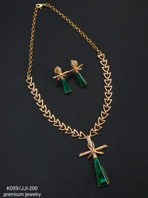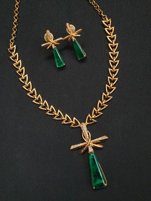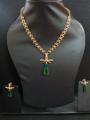 Emerald Green Stone AD Delicate Chain Necklace Set